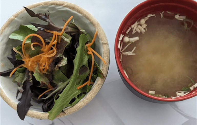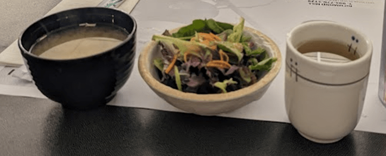 Figure 6: Miso Soup, Garden Salad, and Green Tea
